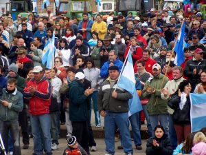 El 12 de marzo de 2008 comenzó una huelga de comercialización de granos, anunciada por la Mesa de Enlace Agropecuaria que agrupaba a las cuatro principales entidades del campo (Sociedad Rural Argentina, Confederaciones Rurales Argentinas, Federación Agraria Argentina y Coninagro). Como explicaron luego los dirigentes, los unió el espanto. Luego vinieron los cortes de ruta, las movilizaciones, los cacerolazos en la Ciudad de Buenos Aires, las contra-marchas K (con Luis D’Elía y Guillermo Moreno reconquistando la Plaza de Mayo) y negociaciones fallidas que solo lograron echar leña al fuego Todo tuvo un final de película la madrugada del 18 de julio en el Congreso, con una votación empatada en el Senado. El voto decisivo y no-positivo fue del vicepresidente Julio Cobos, parte del «radicalismo K»: no apoyó la medida y provocó una derrota política contundente del kirchnerismo.