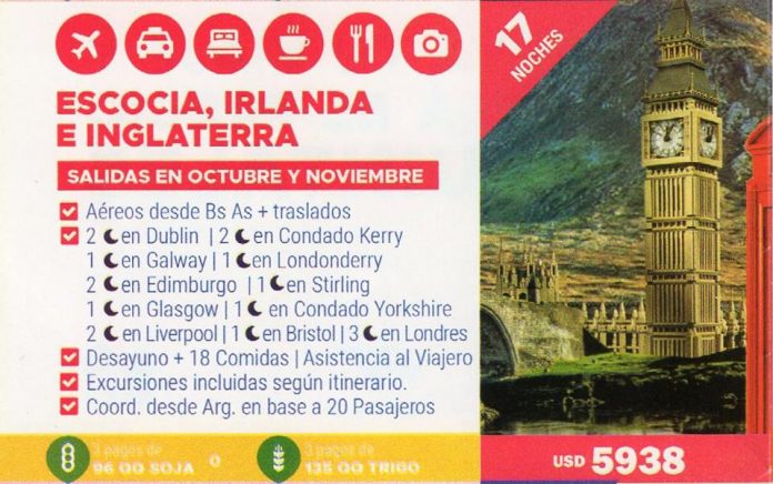 El plan cereal que promueve Coovaeco permite a los productores asociados a la entidad recorrer los mejores destinos del mundo y pagarlo hasta en tres cosechas; en definitiva, tal como dice el lema de la promoción turística, «pagá el viaje que querés, con el fruto de tu trabajo».